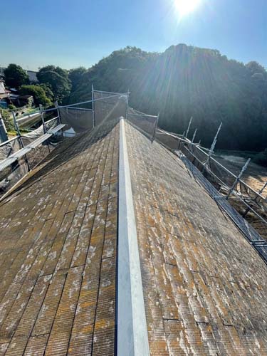 | 施工内容 | 屋根重ね葺き(ヴィクセンブラウン)棟ケラバ(ガルバ材)工事 |